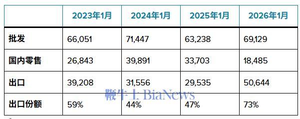 1月国内零售销量走势持续低迷:从2024年1月的近4万辆,跌至两年后的不足1.9万辆,两年间1月销量大跌54%。