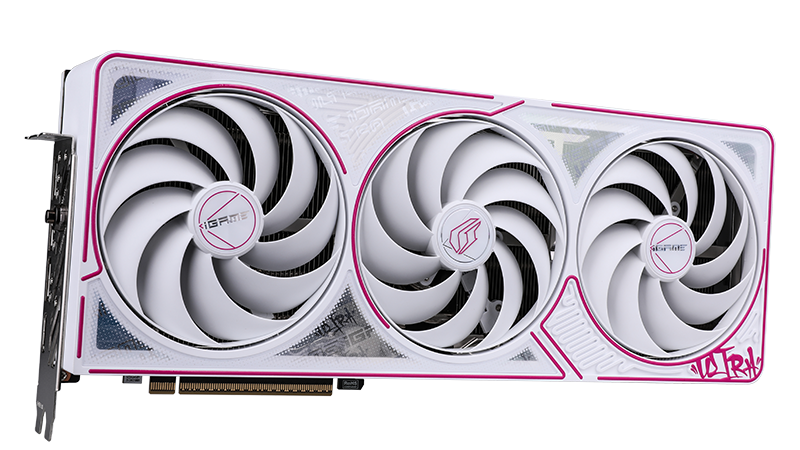 这其中 GeForce RTX 50 世代的卡外 iGame Ultra 便以嘻哈文化为灵感设计,导入白底点缀桃粉的观曝光配色方案,拥有珠光渐变和贯穿式 RGB 灯组。彩虹